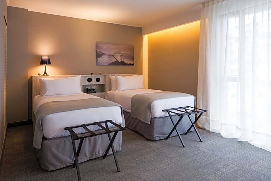 Room fitted with a seating area, a private bathroom with free toiletries, a flat-screen TV with cable channels and a city view.